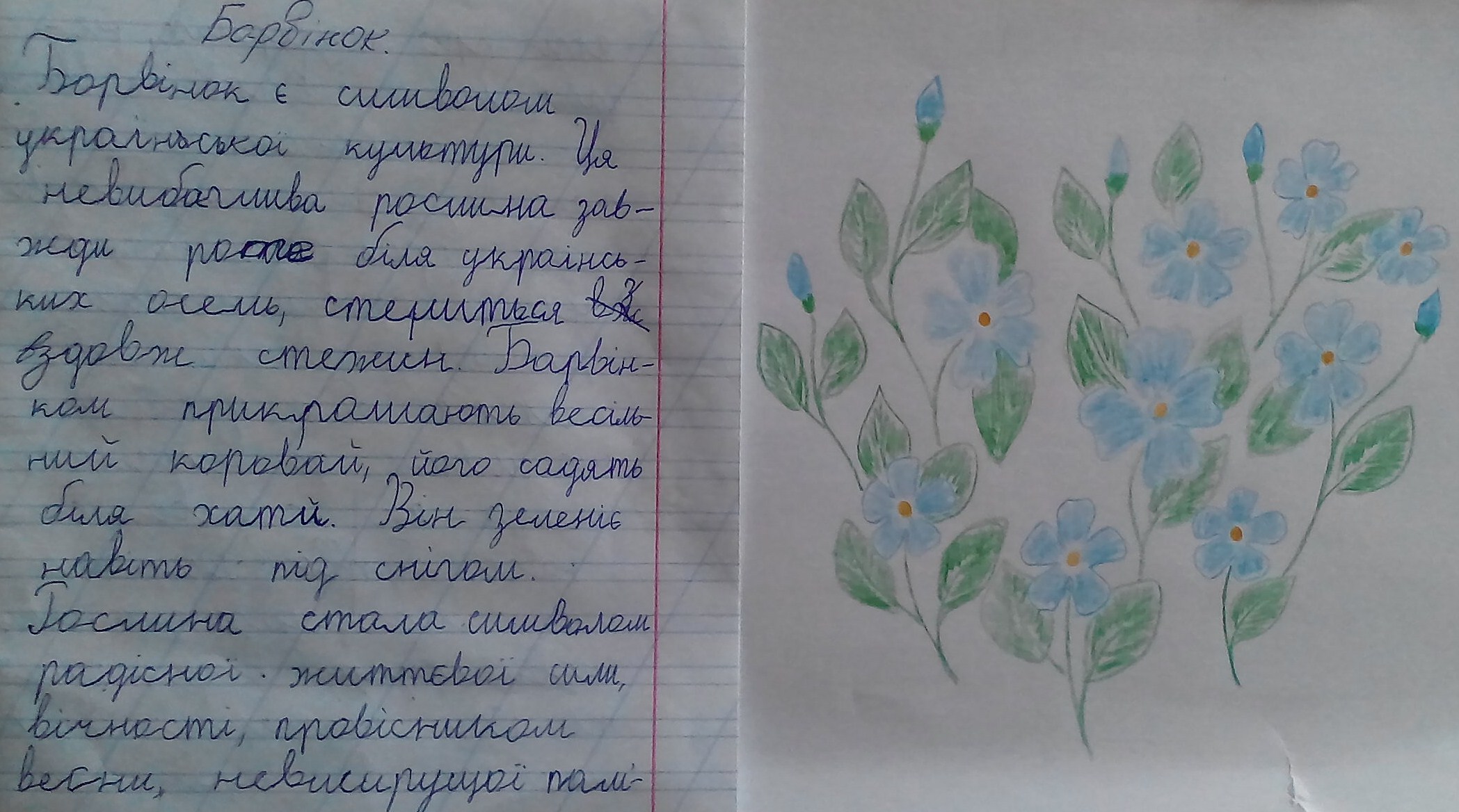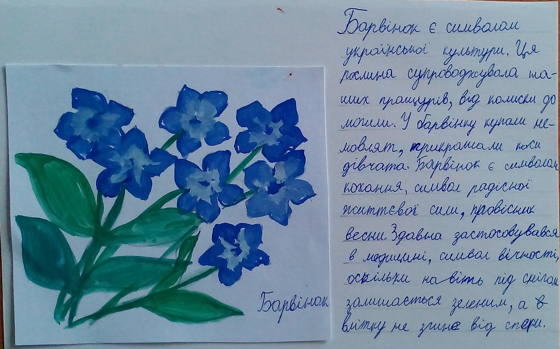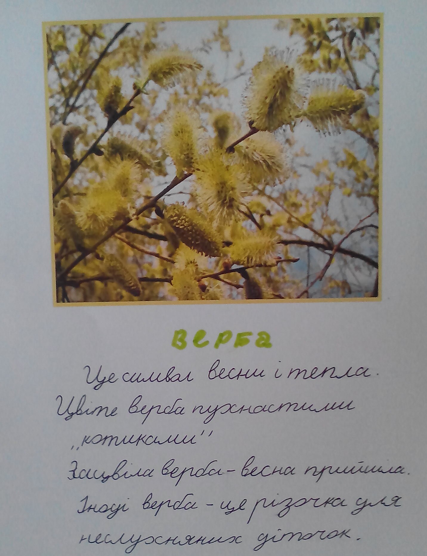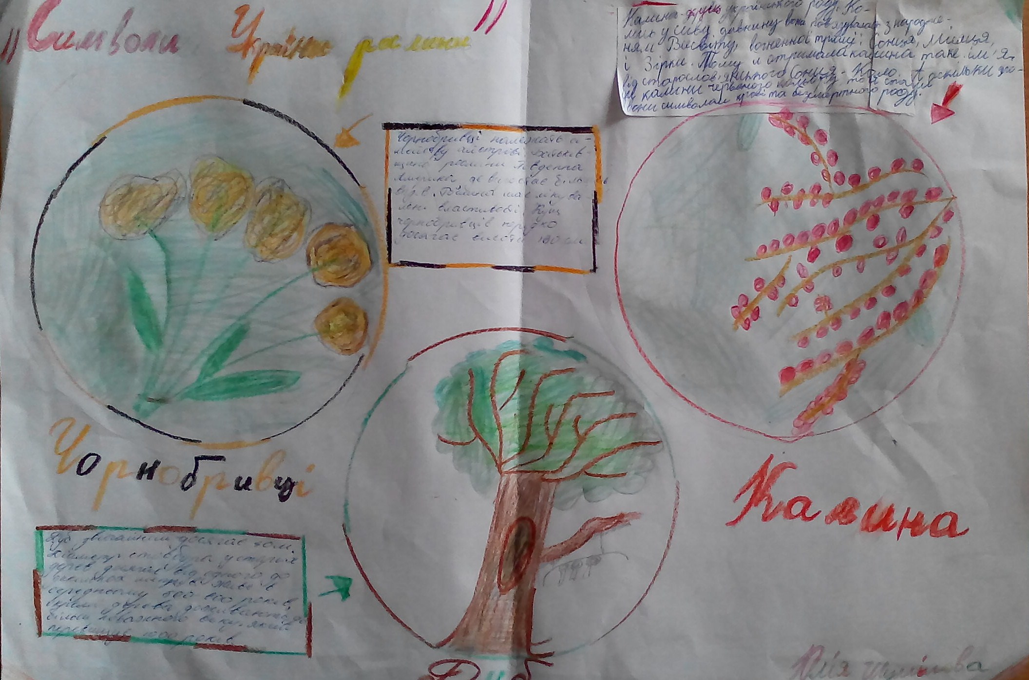 Про вербу, калину, тополю, барвінок, дуб і чорнобривці описала і розповіла Мазур Марія: